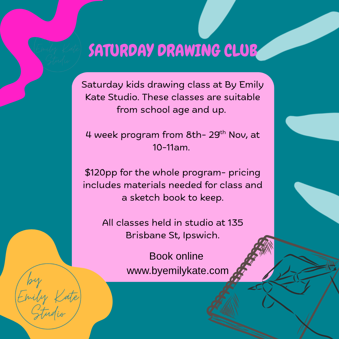 Saturday drawing class at By Emily Kate Studio. These classes are suitable from school age and up.